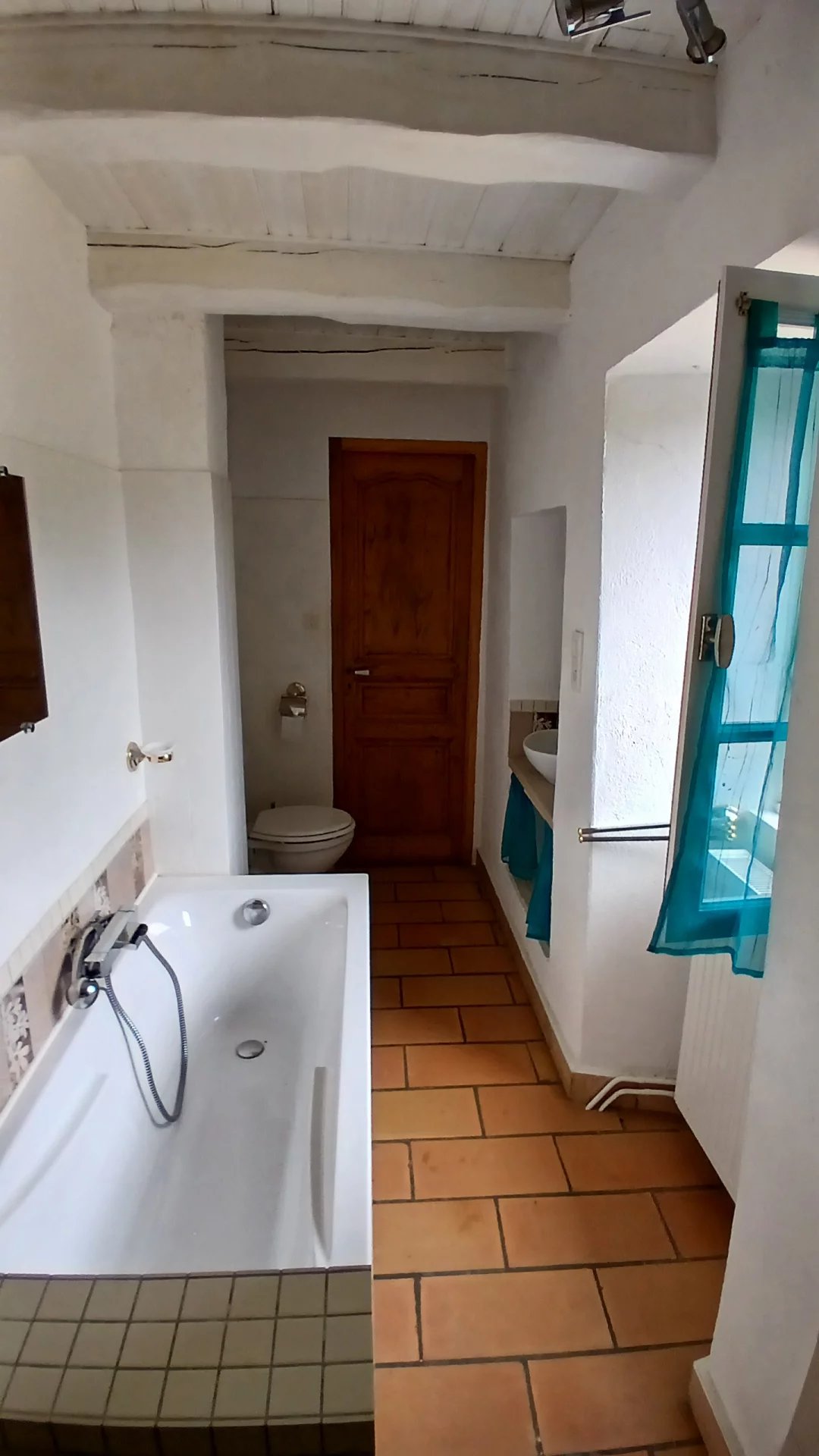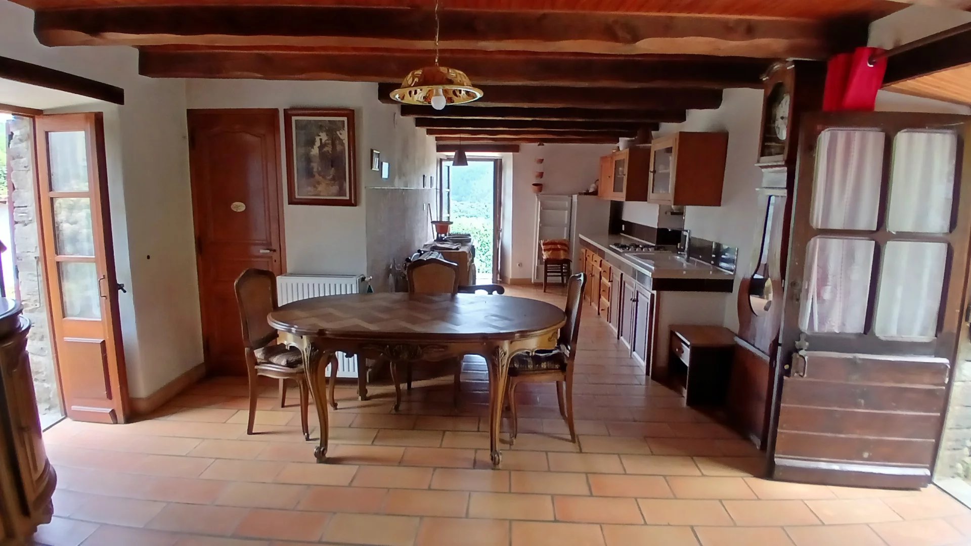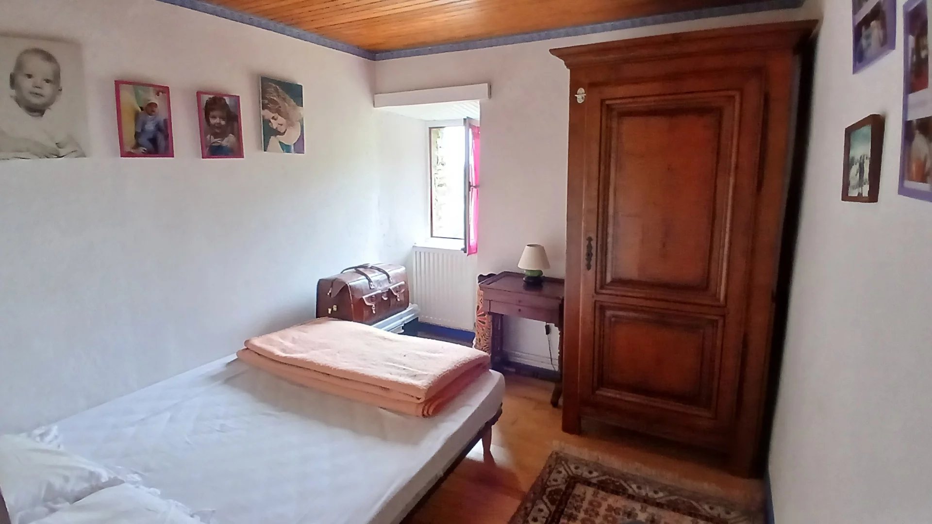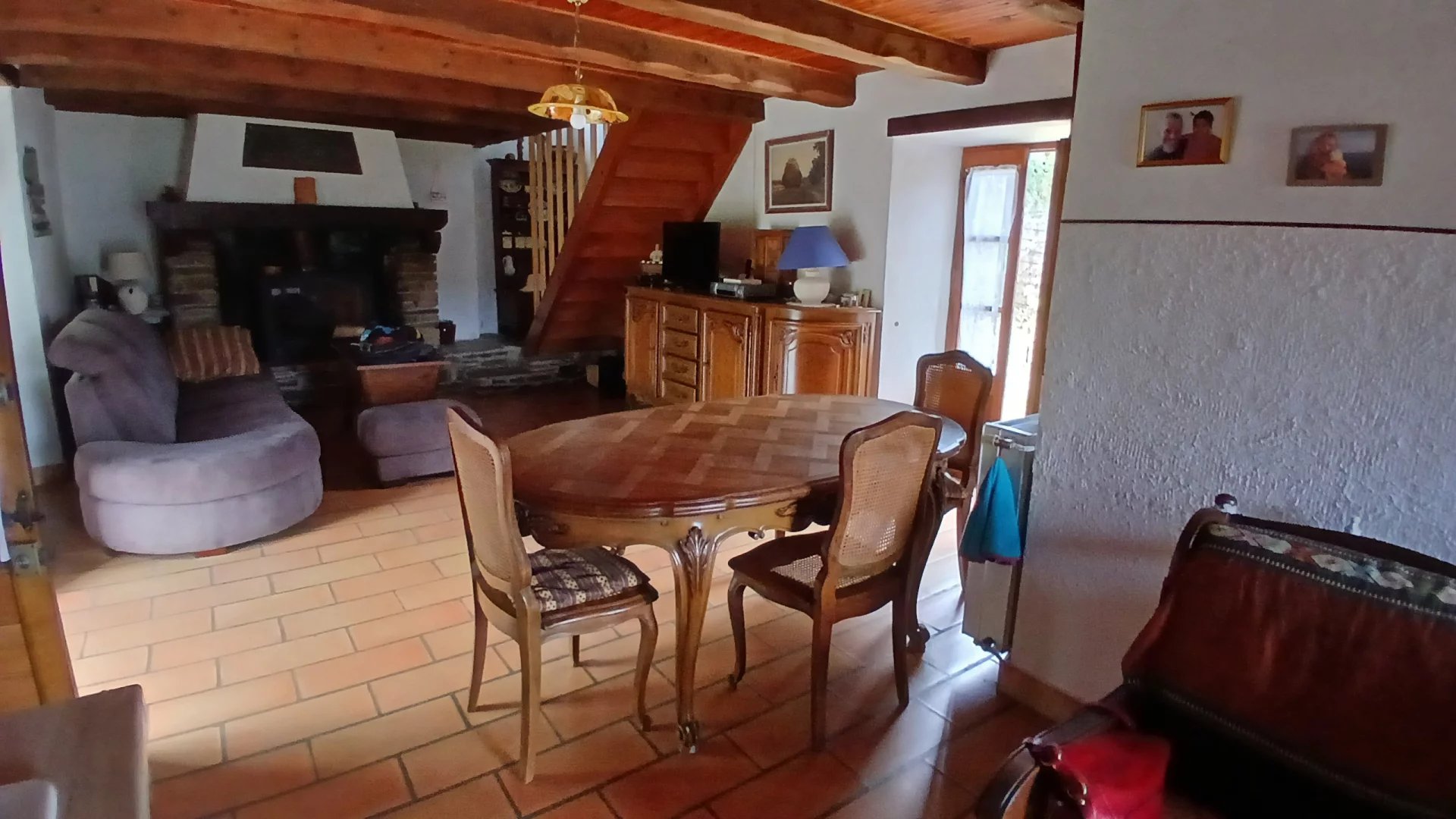 Dans un hameau au clame, Une pièce à vivre de 28 m² avec un insert, 2 chambres de 13 et 11 m² et un bureau de 7 m², salle de bains toilettes, terrasses, Une clède à rénover et cave. Sur plus de 3 hectares de terrain en grande restanques plates et accès à la rivière par la châtaigneraie. Accès en voiture.